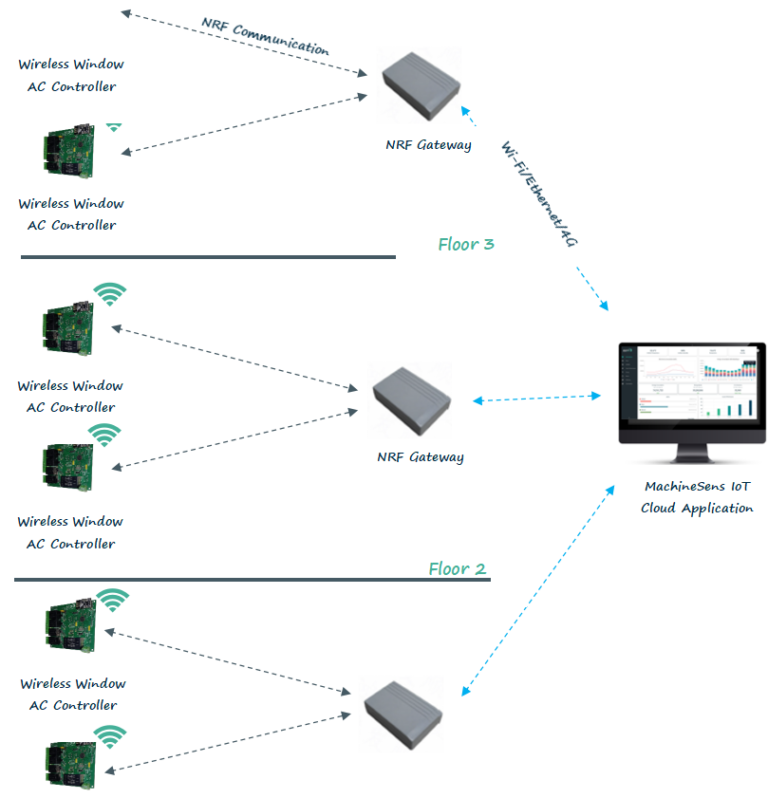 MachineSens IoT® ThermoSense NRF Window AC controller is a high-tech intelligent device that offers centralized monitoring and management of heating and cooling system in offices, homes, and apartments. It is designed to work with a wide range of Window AC units.